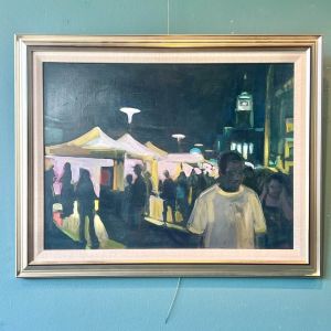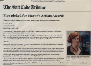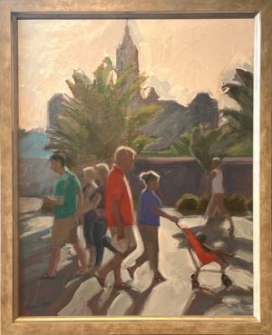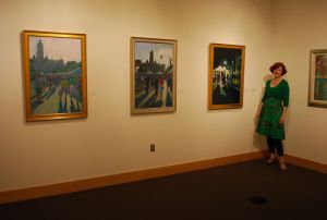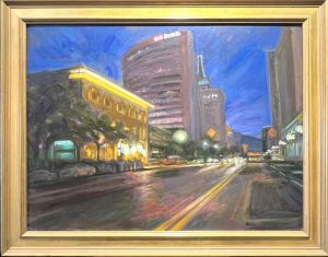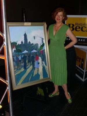 When I moved back to SLC from Manhattan in the late 1990s, I began observing that there were numerous Utah artists painting the landscape, but many fewer celebrating the dynamism and beauty of our urban landscape. Coming from an urban mecca, I was inspired to capture SLC’s own urban scene.This includes its landmarks and gathering places – not just the architecture, streets, and parks but the way certain places served as a energy hub for people. This led to an ongoing series depicting downtown, 9th and 9th landmarks, Liberty and Fairmont parks, local restaurants, theatres as well the glittering crowds of the Utah Arts Festival, I was fortunate and thrilled to be honored with the award in 2013, for the series and our service to the community through the gallery. Today I remain fascinated with the subject of cityscapes.