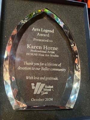 - Other projects have included the privilege of working backstage over the years with Ballet West Academy dancers during rehearsals. Special thanks go to fellow awardee Peter Christie, who facilitated Karen’s work with the Academy. Peter Merz also assisted. As a thank you, Karen has made donations of portions of sales to benefit the Academy.
