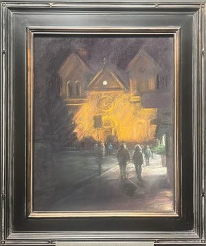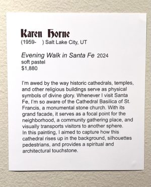 Karen Horne, Evening Walk in Santa Fe, 20×16, pastel, 27×23 w frame. $1,880. Hung in the Dumke gallery. Available through the museum.