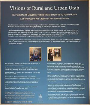 “This presentation brings together the complementary yet distinctive visions of rural and urban Utah from artists Phyllis Horne and her daughter Karen Horne. It reflects a legacy of art-making and appreciation that has run through the Horne family dating back to arts advocate, artist, and legislator, Alice Merrill Horne. It includes never-before and rarely-exhibited works from the Horne family collections.
