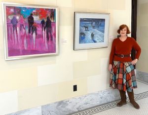 The show offers the visitor a peek from around the state of Utah. Enjoy a selection of gems by Phyllis Horne- including an early dynamic watercolor of Cedar Breaks, a crystalline winter scene from Millcreek Canyon, and an iconic view of Mt. Nebo at sunset. Also enjoy park and festival paintings by Karen Horne including children wading in ponds, dogs cavorting in fresh snow, and neon-lit skaters.